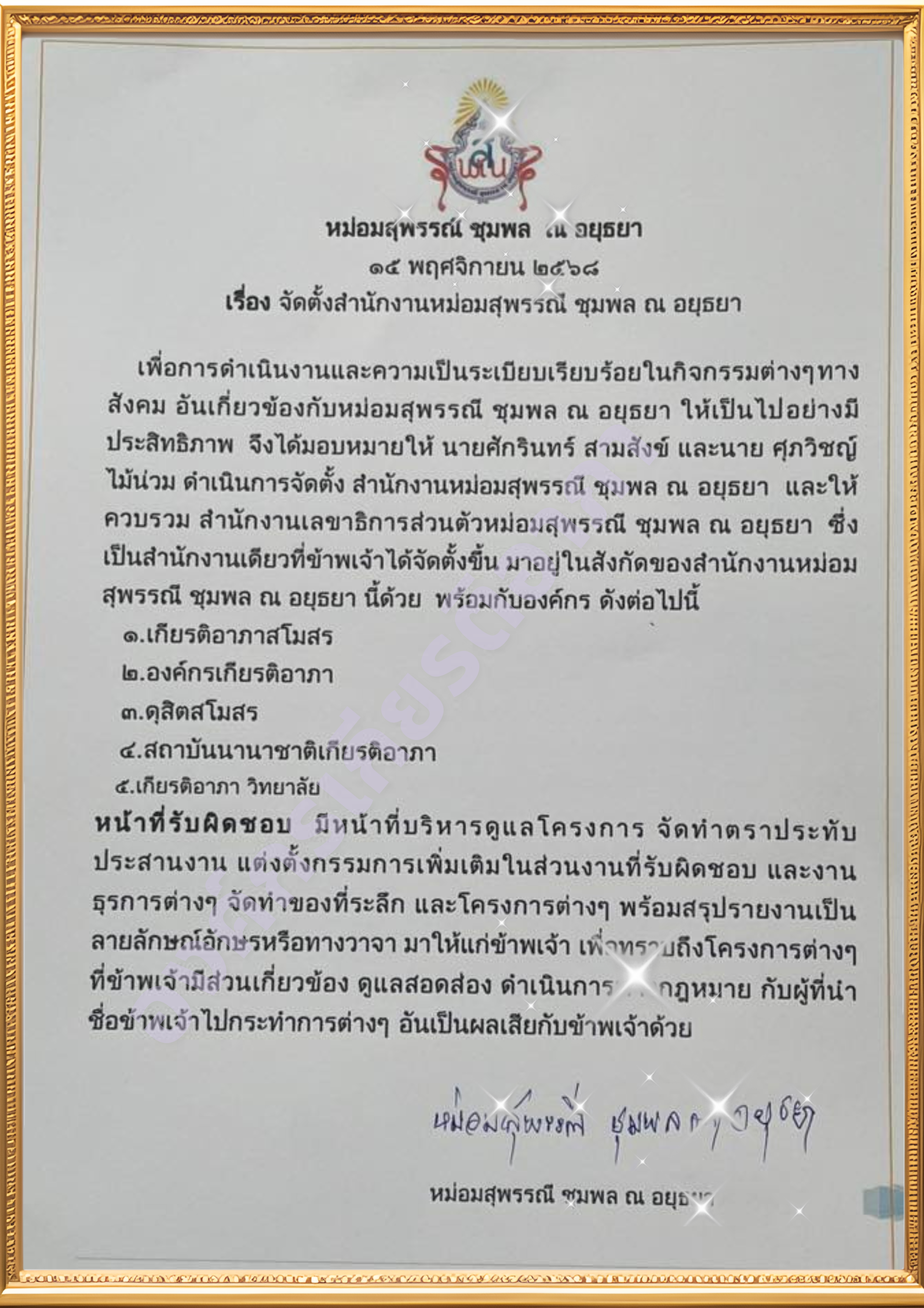 เกียรติอาภาสโมสร ในอุปถัมภ์ หม่อมสุพรรณี ชุมพล ณ อยุธยา